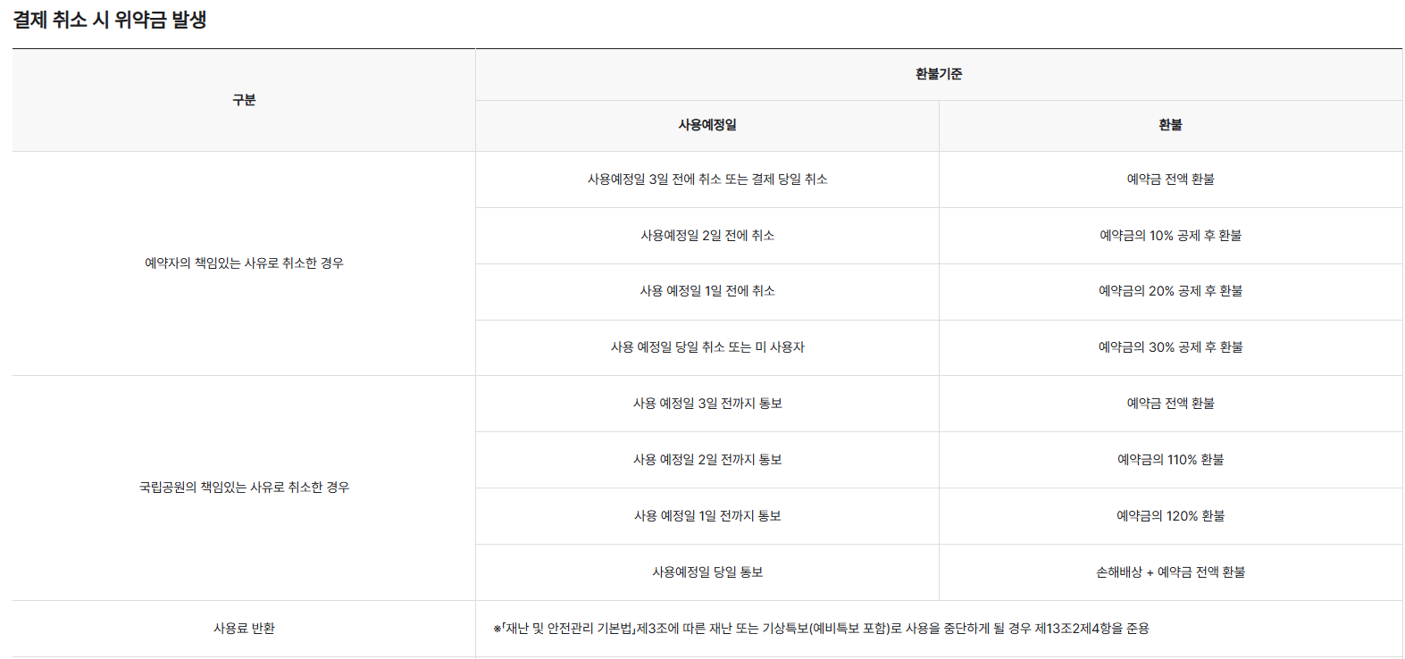 | 환불은 얼마나 걸릴까? | 은행영업일 기준 3~7일, 위약금 차감 후 환불 |