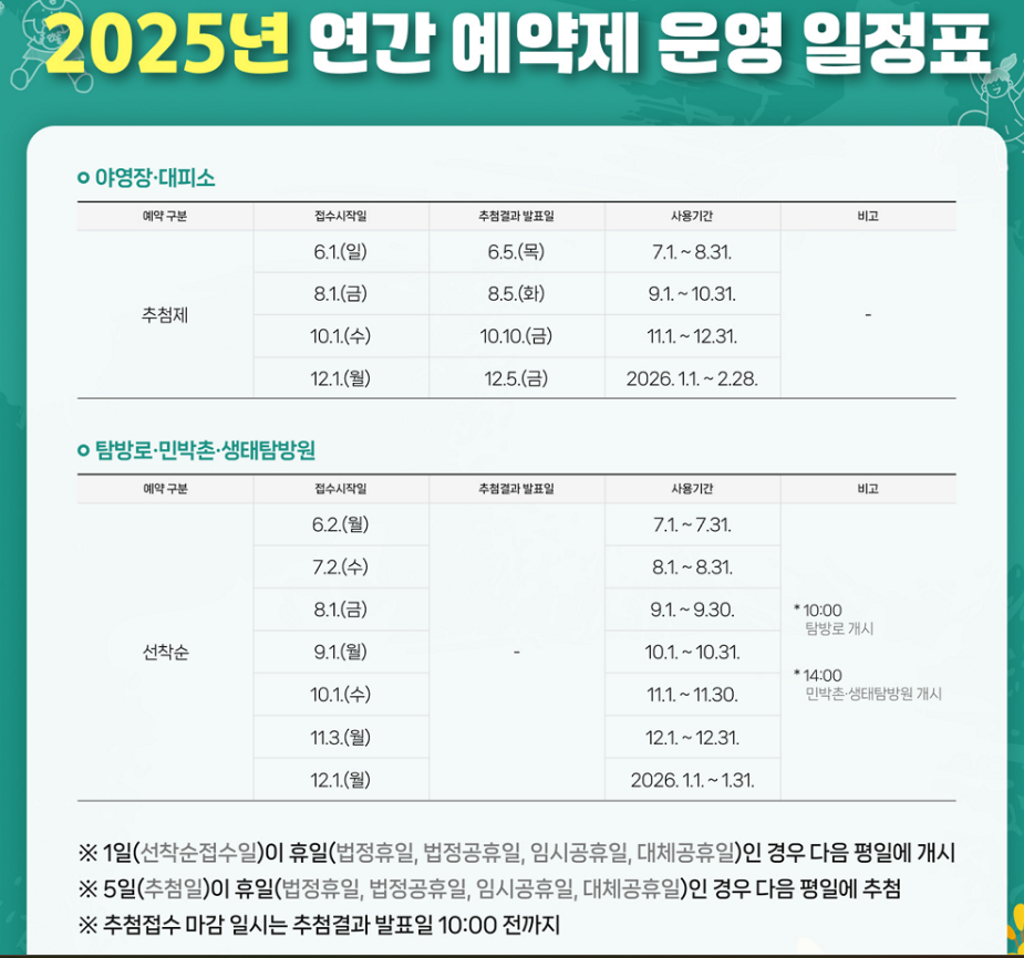 📌 지금 바로 예약통합시스템 접속 후, 다가오는 주말·여름캠핑 일정 잡아보세요!